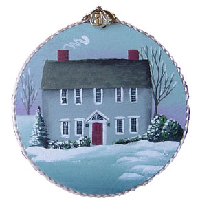 Since 1995 Earth Designs has painted hundreds of these custom ornaments for individual and professional customers alike. They have been used for mementos of the family home, house warmings, first home wedding presents, and by real estate professionals.